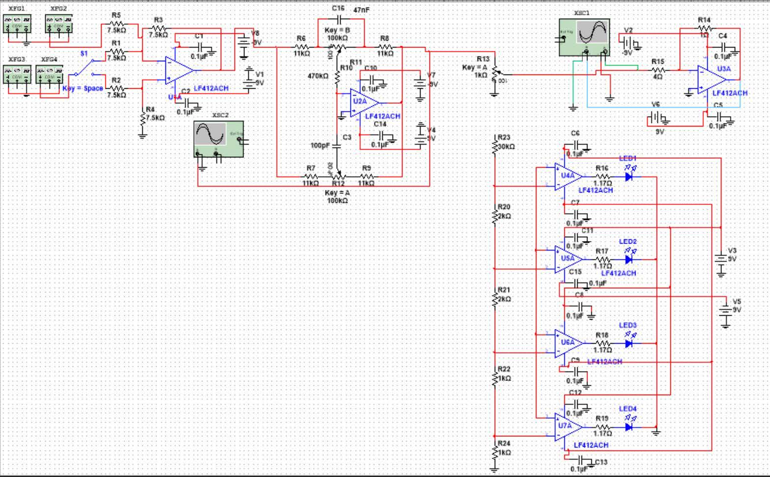 While this project was successful, it required problem-solving throughout the process. Early in the process, designing the circuits, calculating resistor values was challenging, requiring some trial and error. Another challenge was accounting for the difference in powering the circuit using a 9-volt battery instead of the 15-volt power source I was using earlier in the simulation. This required me to diagnose which resistors were causing problems and recalculate the correct values for them. Breadboard troubleshooting also required organization and attention to detail when it comes to wiring and component placement to ensure stable operation. Once these issues were resolved, the transition to the PCB was straightforward, and the final build performed as intended. Leading the device to work seamlessly.
